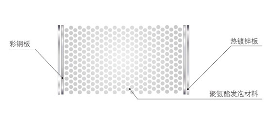 分體式復合型材結構專利,外板采用優(yōu)質彩鋼板,內板采用防腐蝕的熱鍍鋅板,中間夾層充注45kg/m³的聚氨酯發(fā)泡材料。箱板導熱系數(shù)≤0.0224w/m.℃,具有 閉式氣孔的絕熱材料,氣孔內空氣被分隔開而不會影響絕熱效果。
